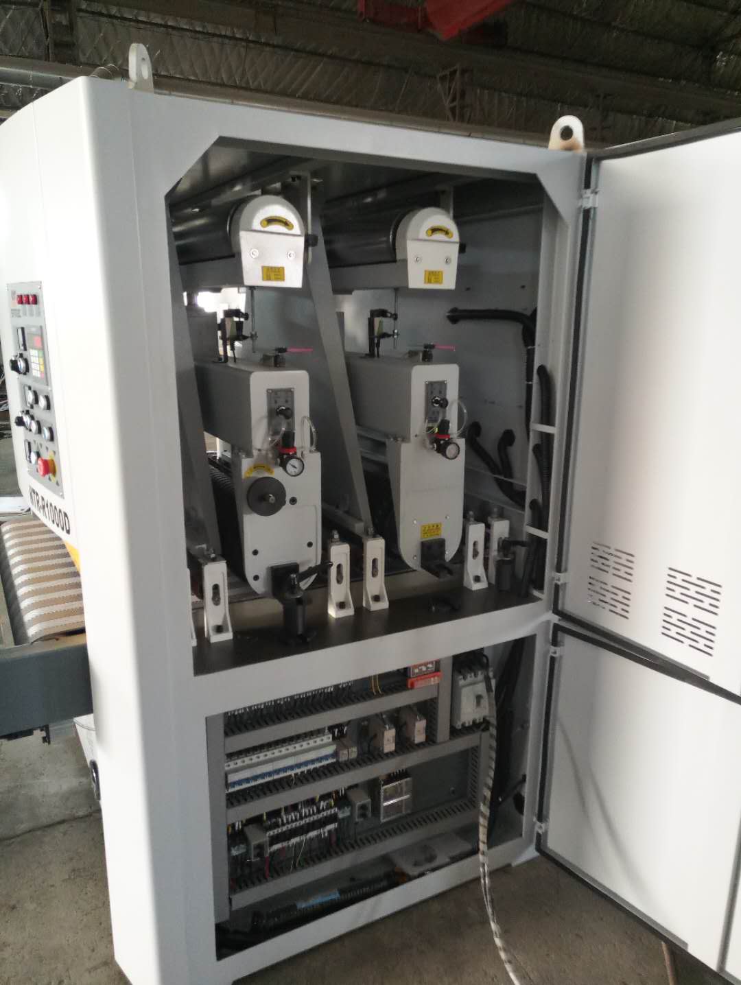 性能特點:本底漆砂光機主要適用于實木地板、板式家具、復(fù)合板材、實木門窗、工藝品、仿古地板的漆面砂光及表面精拋光。 -進口變頻器調(diào)節(jié)砂帶的線速度,送料系統(tǒng)選用無級變速機 -前砂架為可調(diào)式膠輥,操作簡單,砂偏易調(diào)節(jié),砂架采用鑄造結(jié)構(gòu),變形小,吸震效果好。 -采用25SH天然橡膠彈性大不變形,消除橫紋白邊現(xiàn)象精度高并且使用壽命長 -在出現(xiàn)故障情況下,設(shè)備斷電、剎車、輸送床產(chǎn)生保護下降,可保護工件不被破壞 -先進的動平衡檢測定厚輥,鋼輥,皮帶輪,使機器運行更加平穩(wěn) -吹塵裝置有效清除砂帶積塵,降溫,延長砂帶使用壽命,提高砂光精度。 -氣壓不足或砂帶斷帶,跑偏時自動停機,工作臺自動下降確保安全